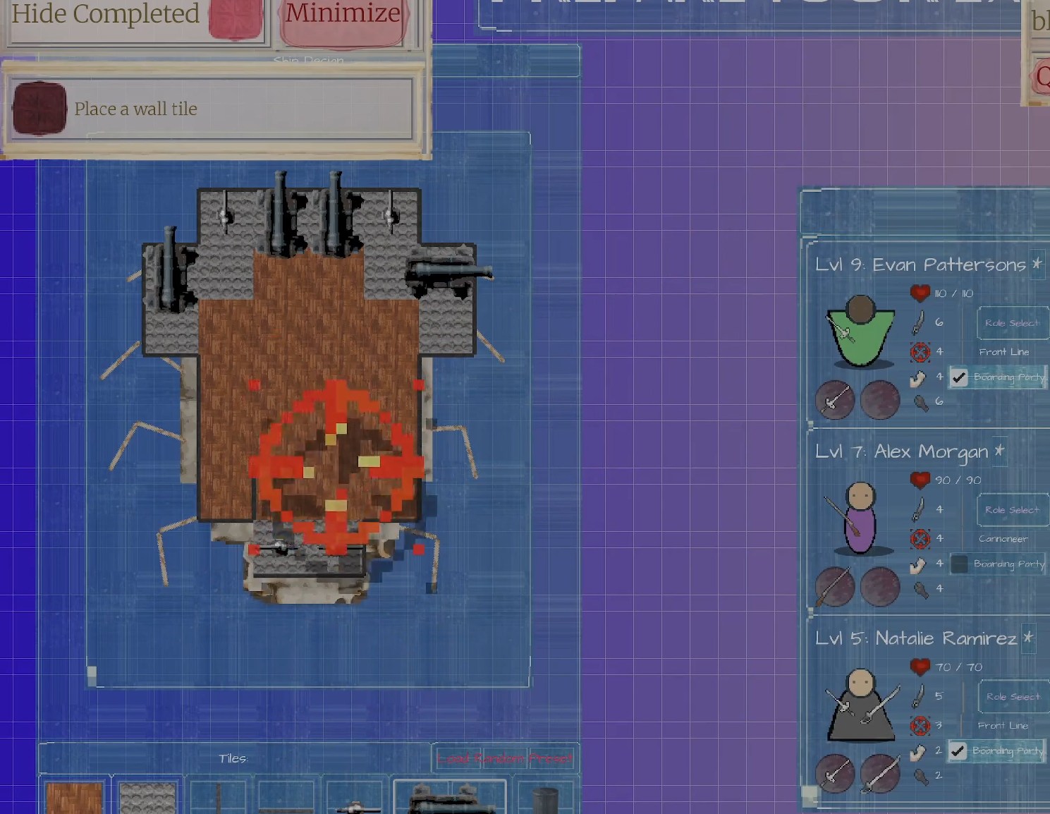 Build out your ship's decks, walls (cover from ranged attacks), and gun placement: